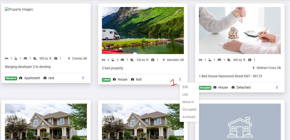 the property with respective action icon.